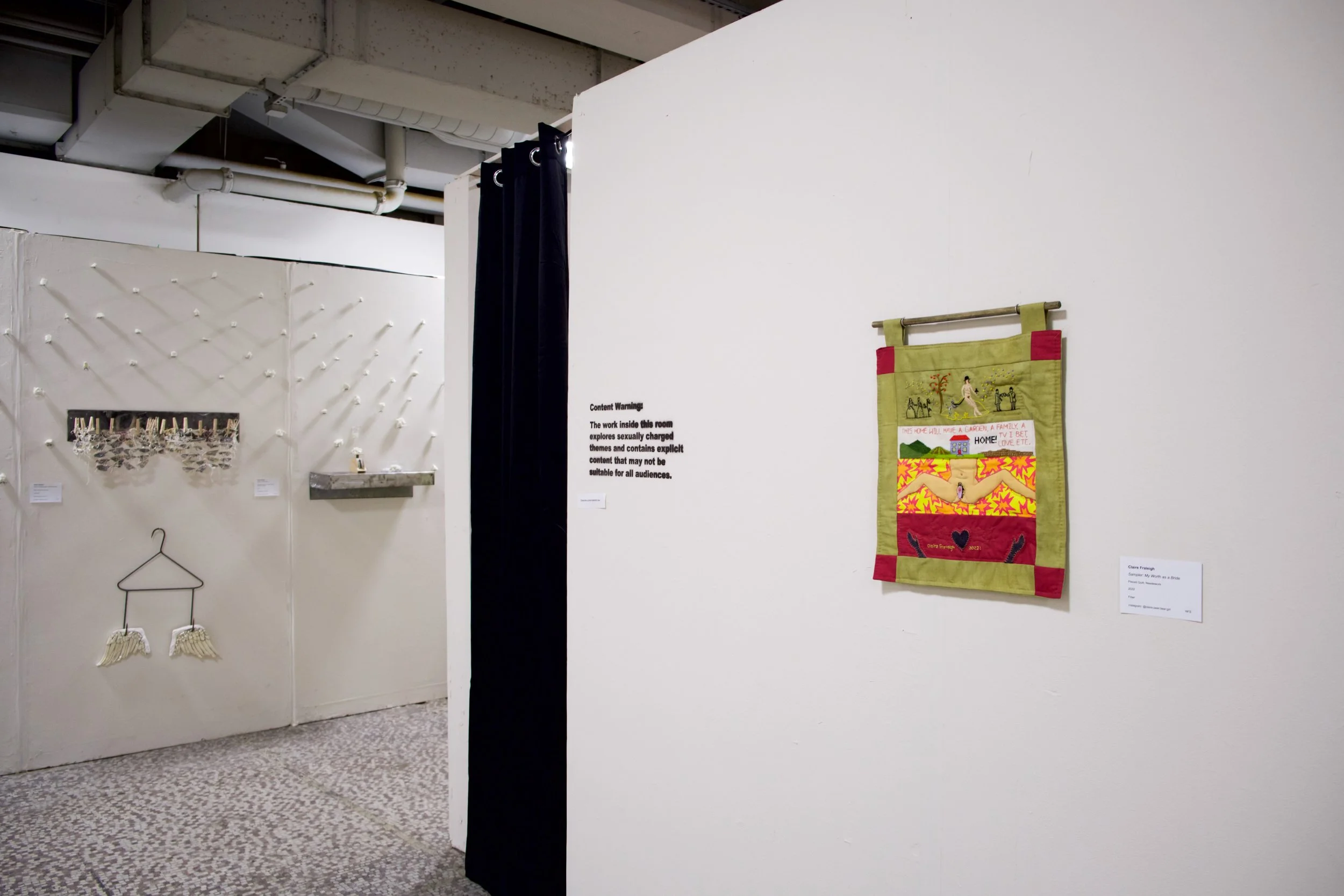 “Welcome” was a thesis exhibition compiling the work of Claire Fraleigh, Sarah Becker, and Finn Yencken. The show explored themes of intimacy and closeness within three separate spaces.